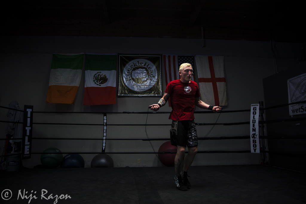 - Jesse Newell jumps rope in the ring of the Knuckleheadz Boxing Gym in Ventura, Calif., on Tuesday, July 22, 2013. Newell has been fighting for as long as he can remember, starting his career as a wrestler on a team in high school. He hit a rough patch and stopped, but was given a second chance when he was offered the opportunity to be a professional mixed martial artist. "This is gonna be the story I tell my children," Newell said. (© Niji Razon 2013)