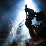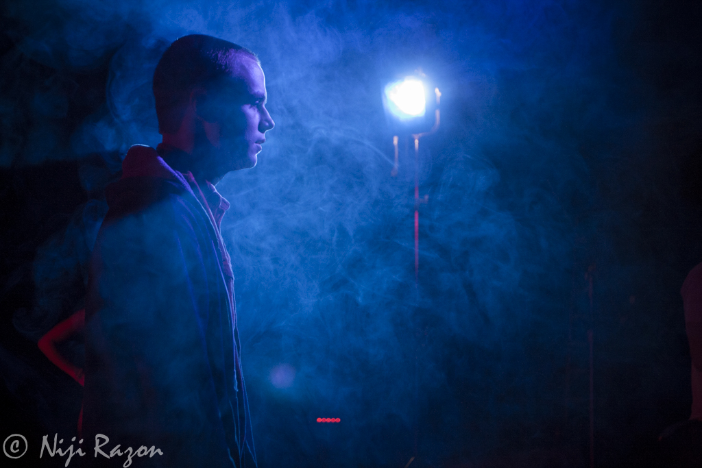 - Sydney Hoggan flips her hair in front of a backlight at Singapore American's School's photography studio in Singapore.